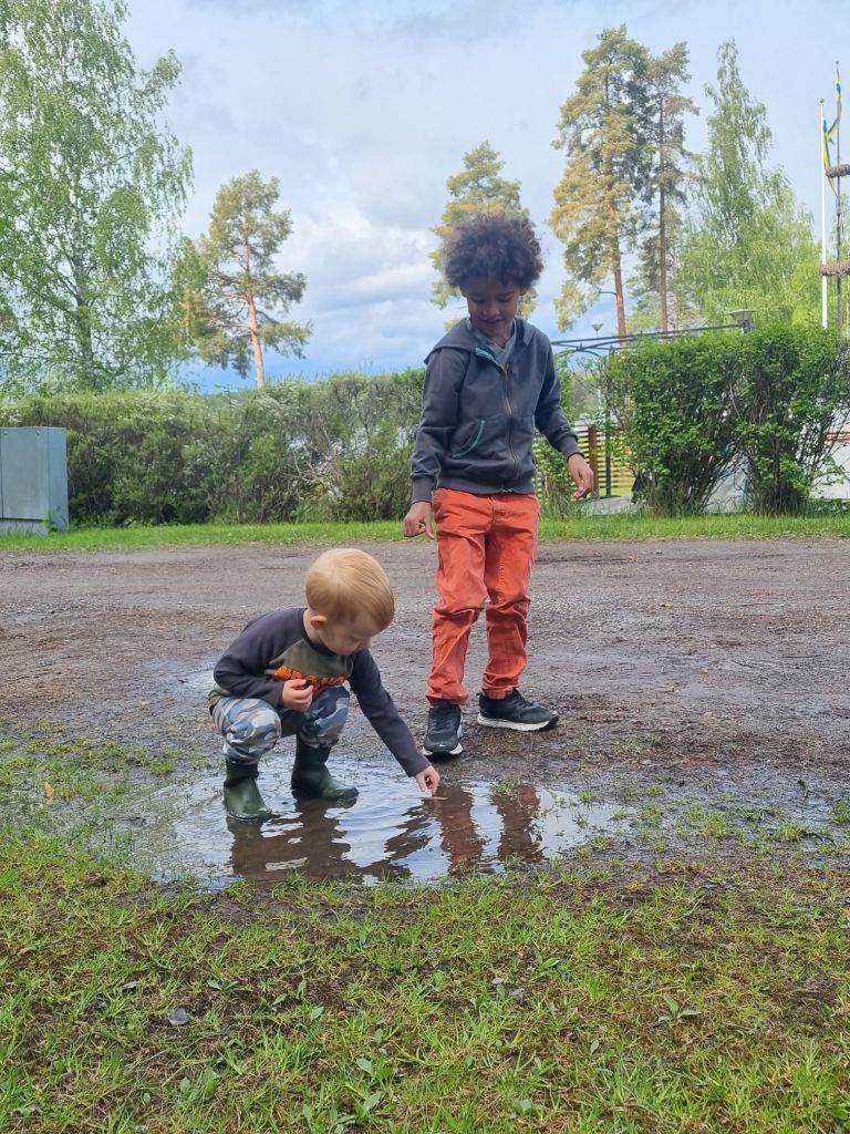 Sen hittade de en vattenpöl – och där blev de kvar hur länge som helst. Så kul att se hur nöjda de var med bara lite vatten, några stenar och pinnar. Mer än så behövs ju inte.